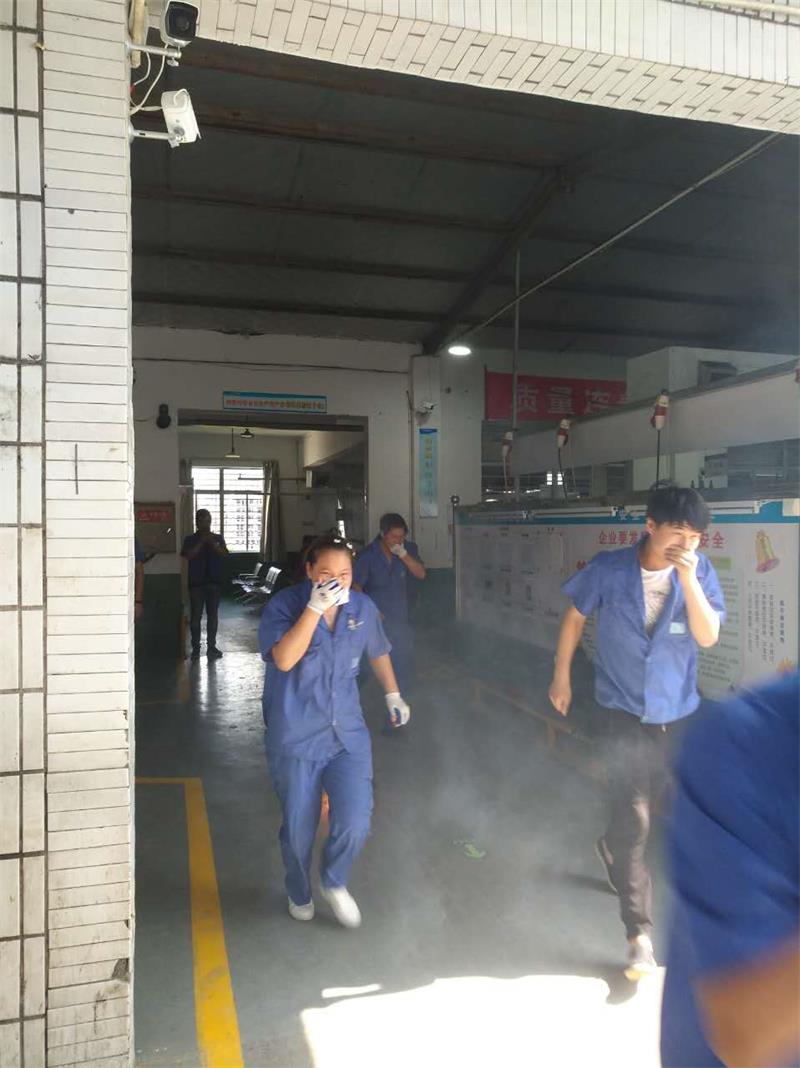 與此同時(shí),車間現(xiàn)場(chǎng)管理人員立即撥打了110、120報(bào)警。義務(wù)消防隊(duì)隊(duì)長(zhǎng)在接到員工報(bào)警后,立即問(wèn)清著火部位,切斷了總閘電源,并召集義務(wù)消防隊(duì)員攜干粉滅火器奔赴現(xiàn)場(chǎng)滅火。 疏散組人員馬上指揮現(xiàn)場(chǎng)人員用濕毛巾捂住口鼻,緊張有序地撤離到安全區(qū)域。