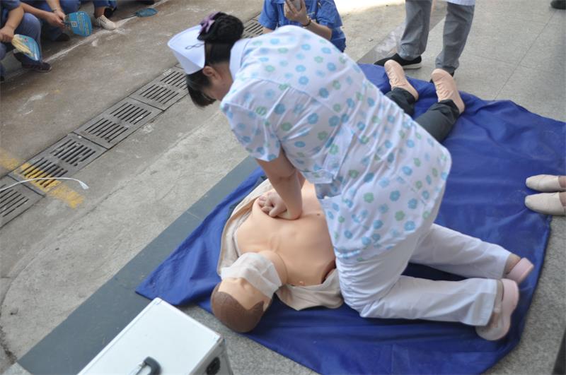 緊接著,仁和醫(yī)院的醫(yī)生和護(hù)士,進(jìn)行了心肺復(fù)蘇等緊急救援方式展示,詳細(xì)講解了救援過(guò)程中的要點(diǎn)難點(diǎn);部分員工進(jìn)行了現(xiàn)場(chǎng)模擬施救。